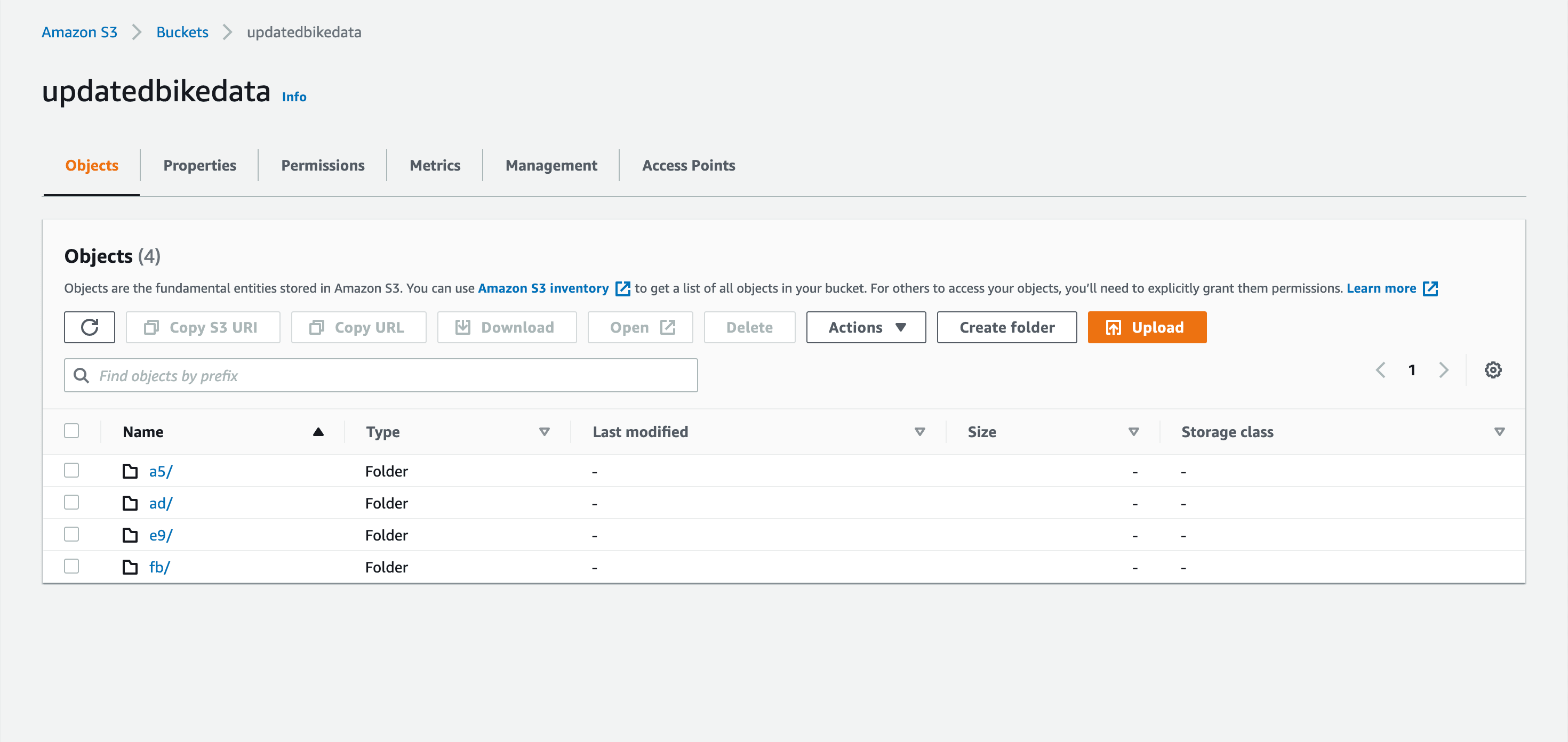 $ dvc remote add -d bikes s3://updatedbikedataThis creates a default remote called bikes that connects to the