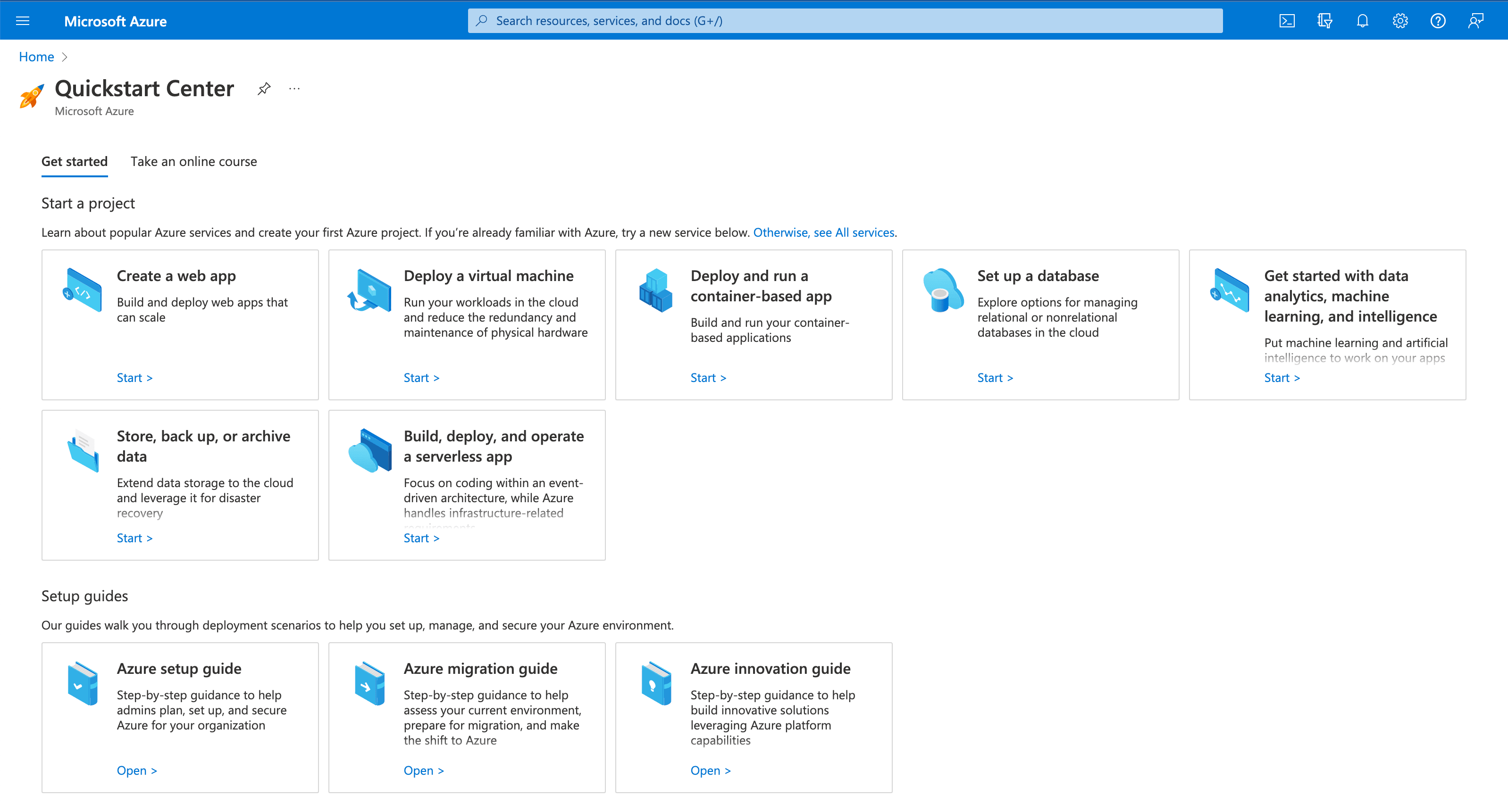 Make sure that you already have a Microsoft Azure account. When you log in, you should see a page like this.