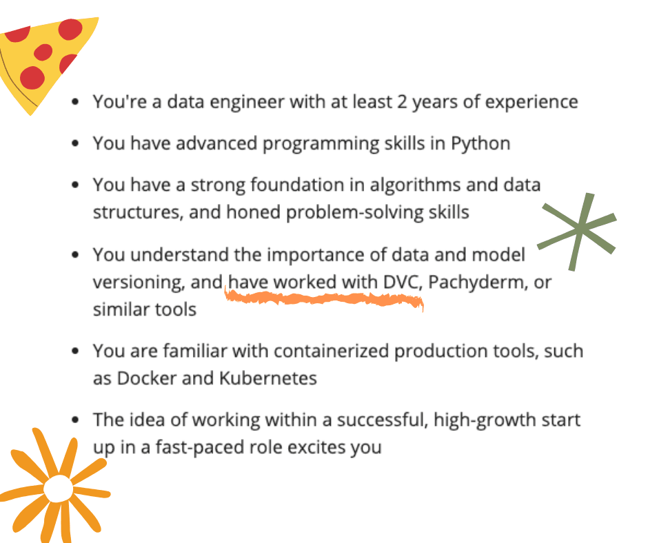 • DVC is a job requirement! We celebrated a small milestone when we stumbled .. across a listing for a data engineer to support R&D at Elvie, a maker of tech for women's health (pretty neat mission). The decorations on the job posting are ours 😎