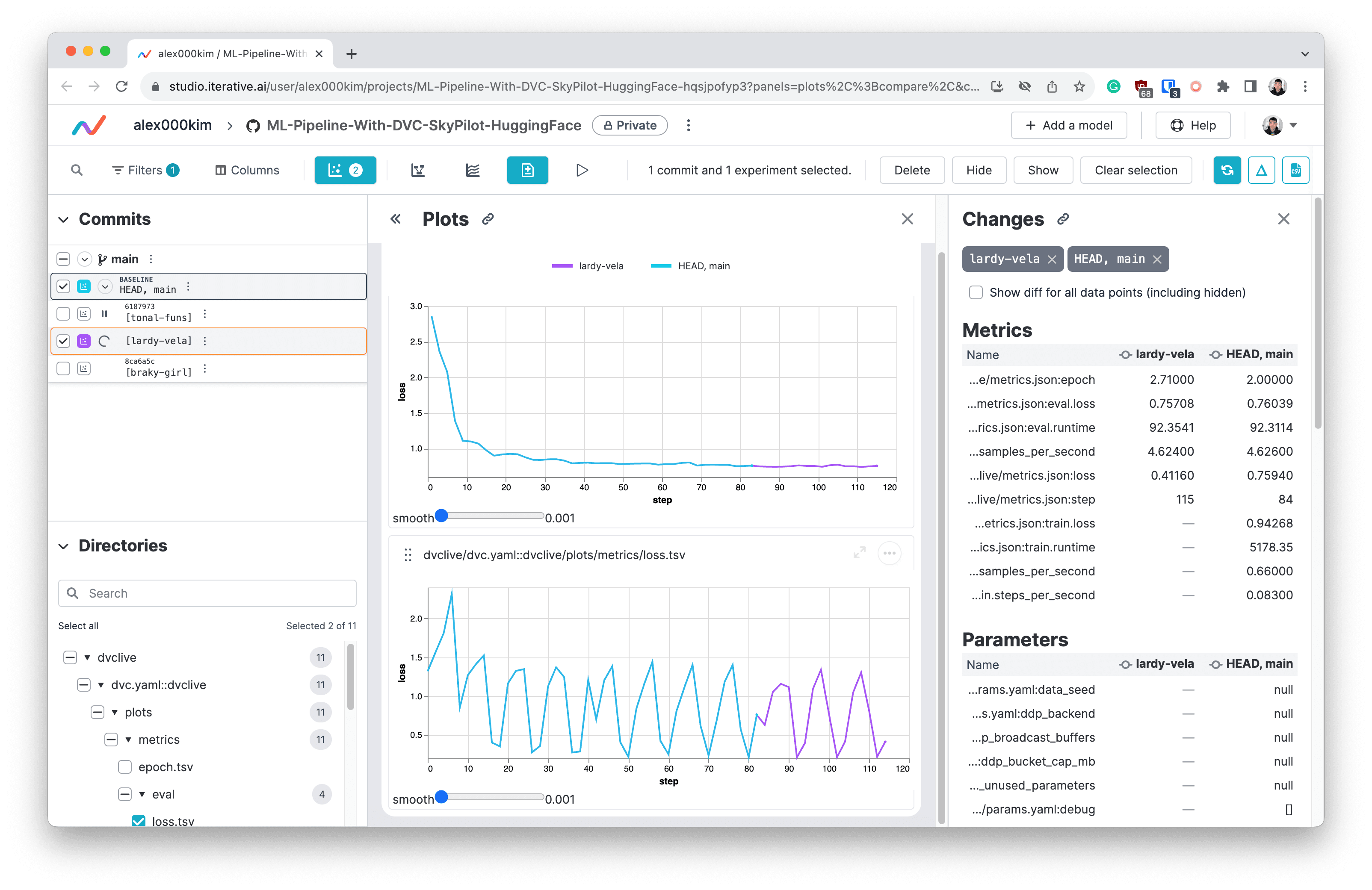 https://github.com/alex000kim/ML-Pipeline-With-DVC-SkyPilot-HuggingFace