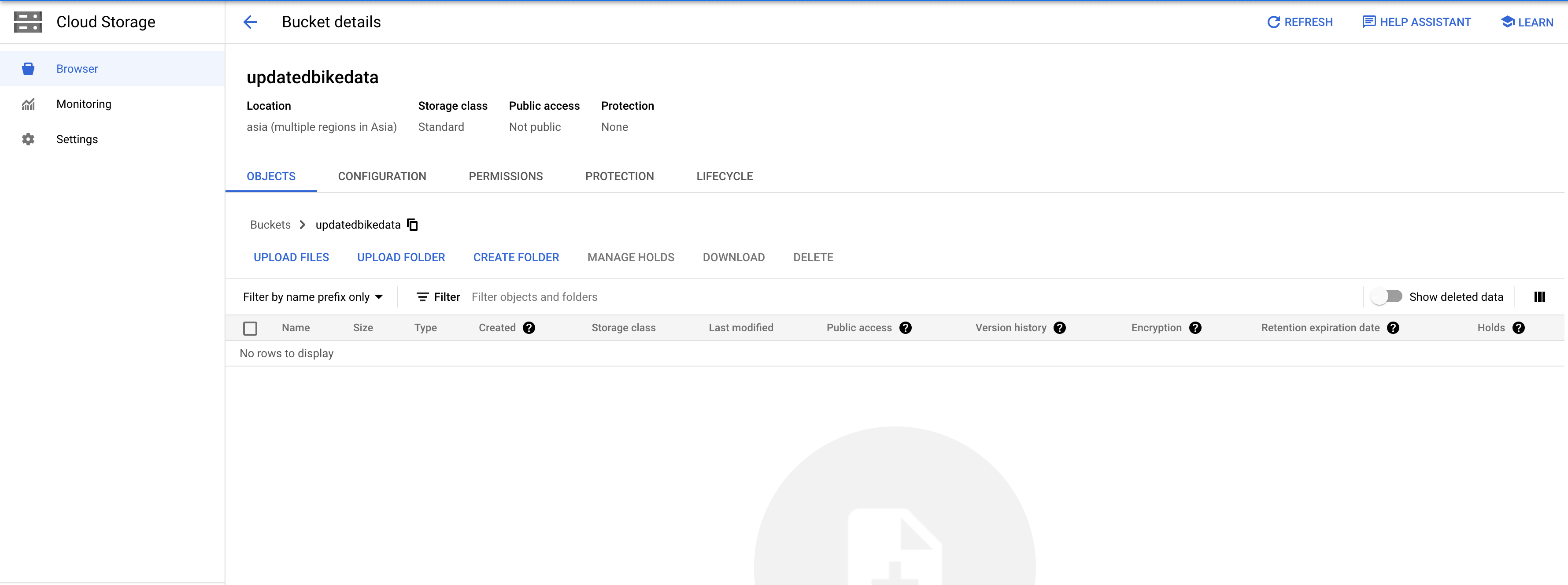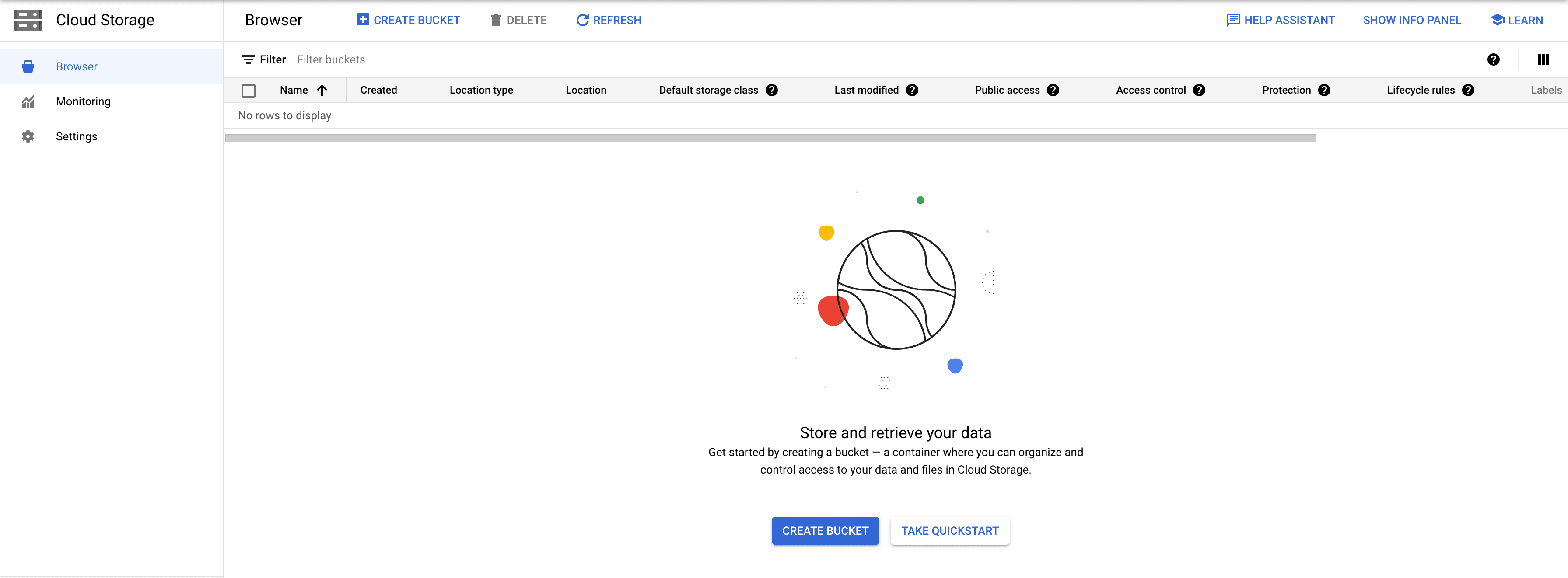 Then you need to go to Cloud Storage in the left sidebar to create a bucket to